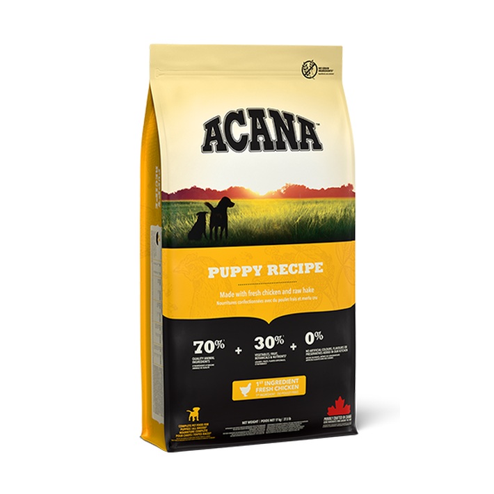 אקנה | מזון לגורי כלבים – עוף ודג קוד ללא דגנים | 11.4 ק"ג