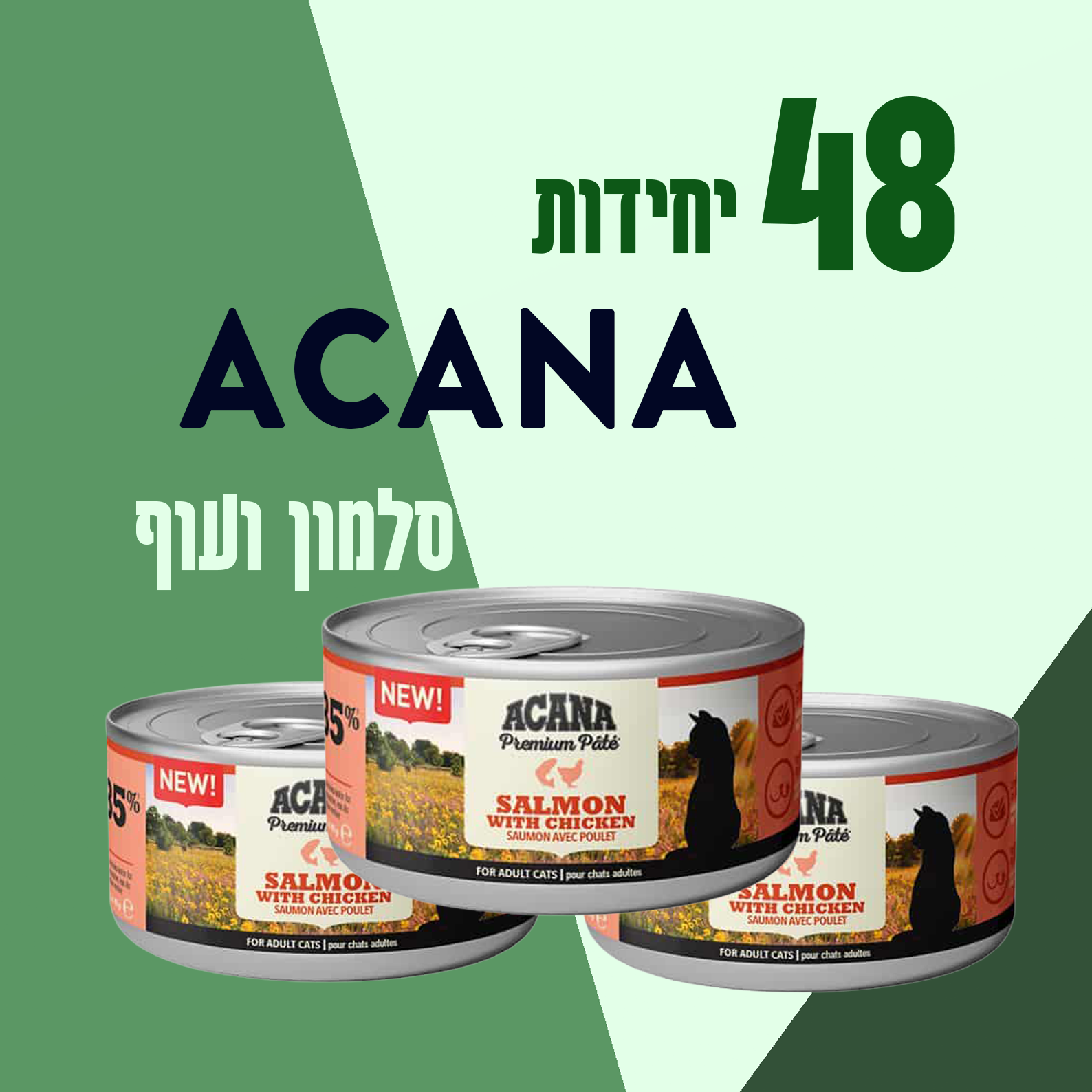 48 יח’ אקנה – מזון מלא סלמון ועוף – פטה לחתול | 85 גר’
