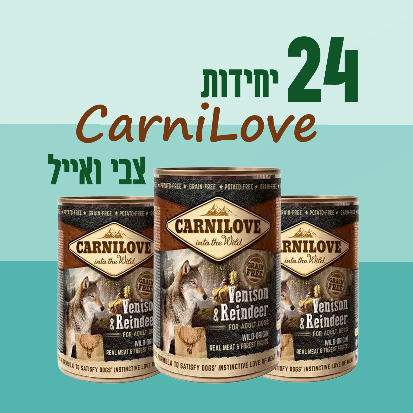 24 יח’ קרני לאב | מזון מלא לכלב בוגר – צבי ואייל | 400 גר’