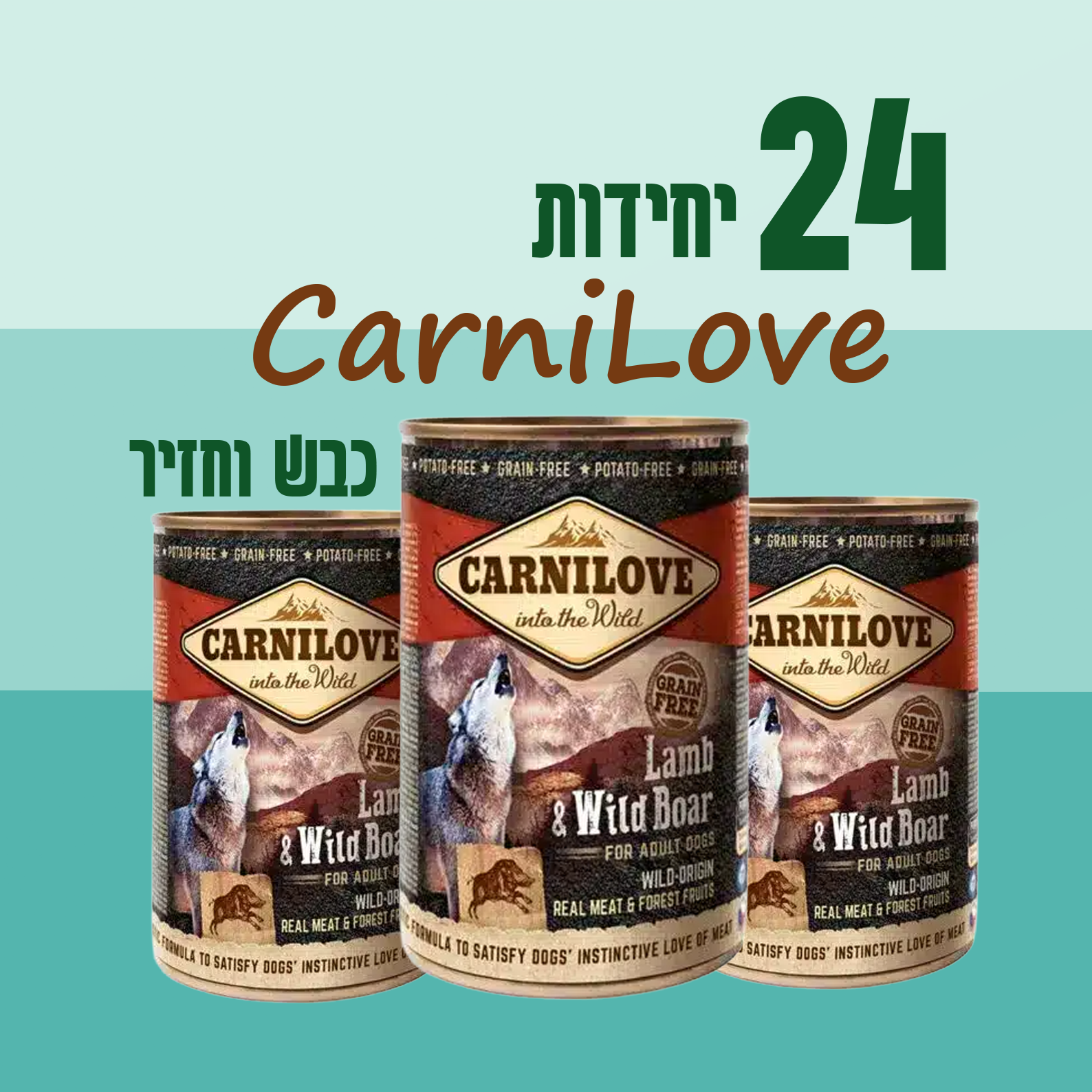כמות של 24 יח' קרני לאב | מזון מלא לכלב בוגר – כבש וחזיר | 400 גר’