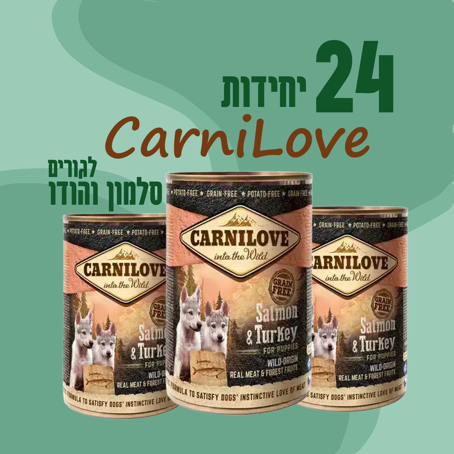 24 יח' קרני לאב | מזון מלא לגורי כלבים – סלמון והודו | 400 גר’