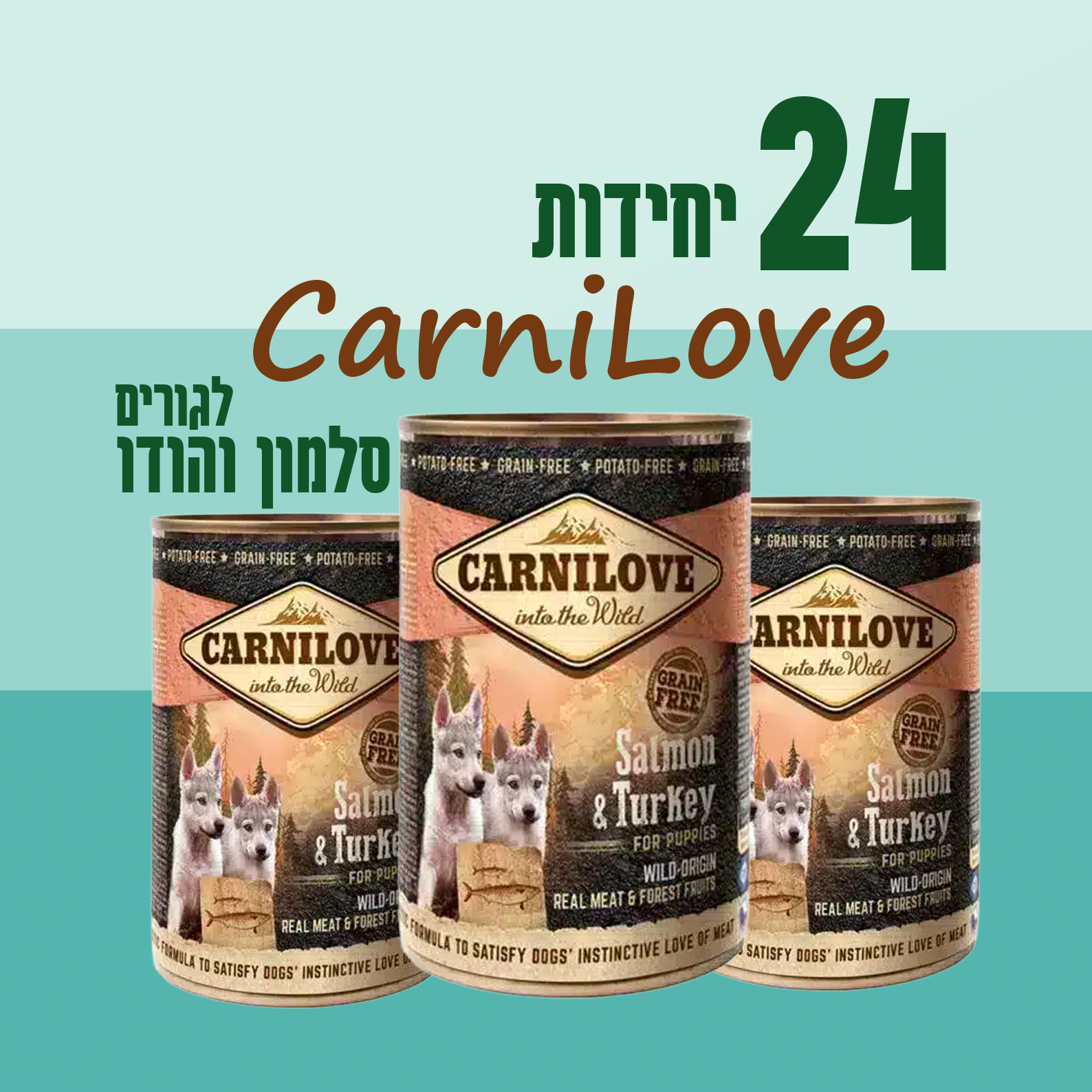 24 יח’ קרני לאב | מזון מלא לגורי כלבים – סלמון והודו | 400 גר’