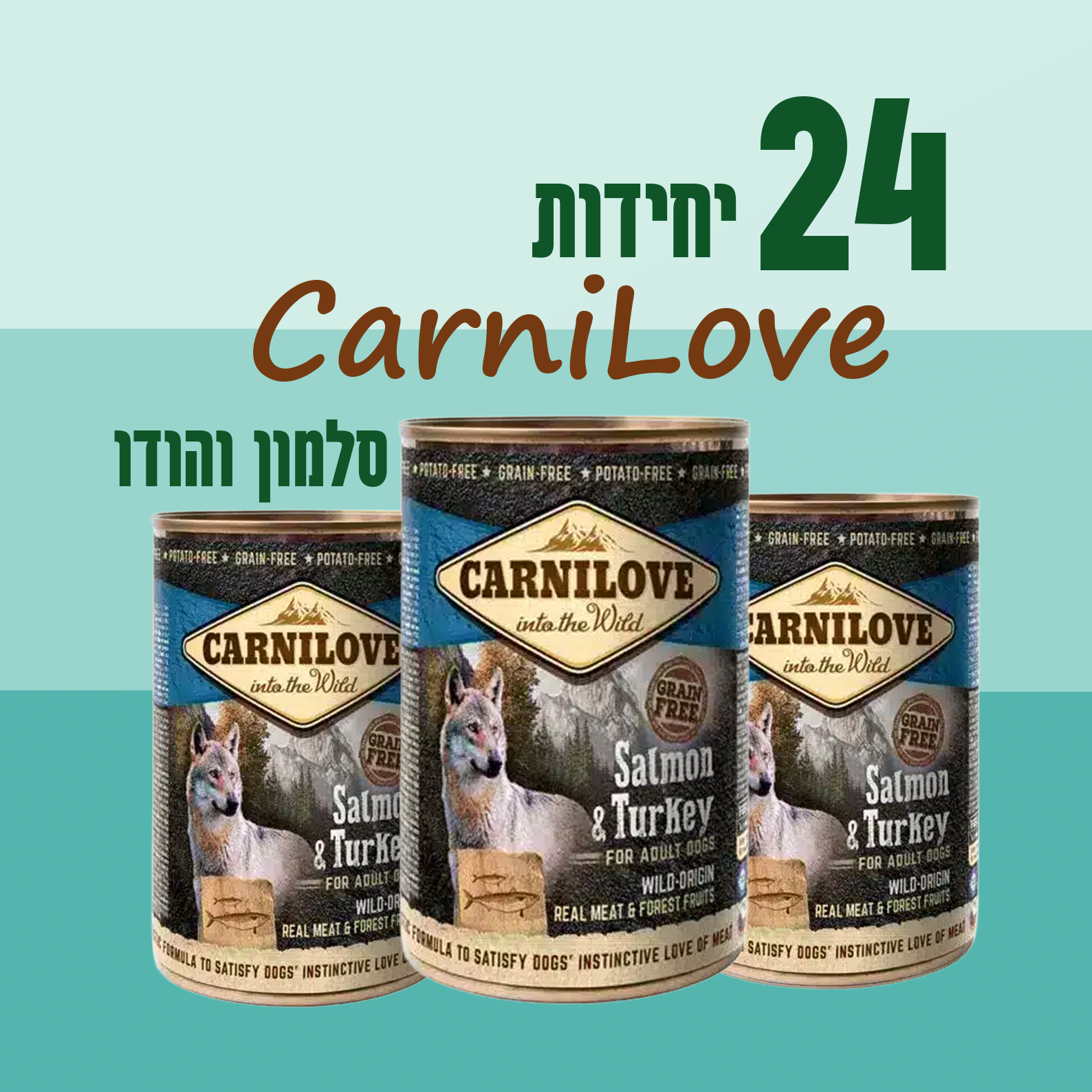 24 יח’ קרני לאב | מזון מלא לכלב בוגר – סלמון והודו | 400 גר’