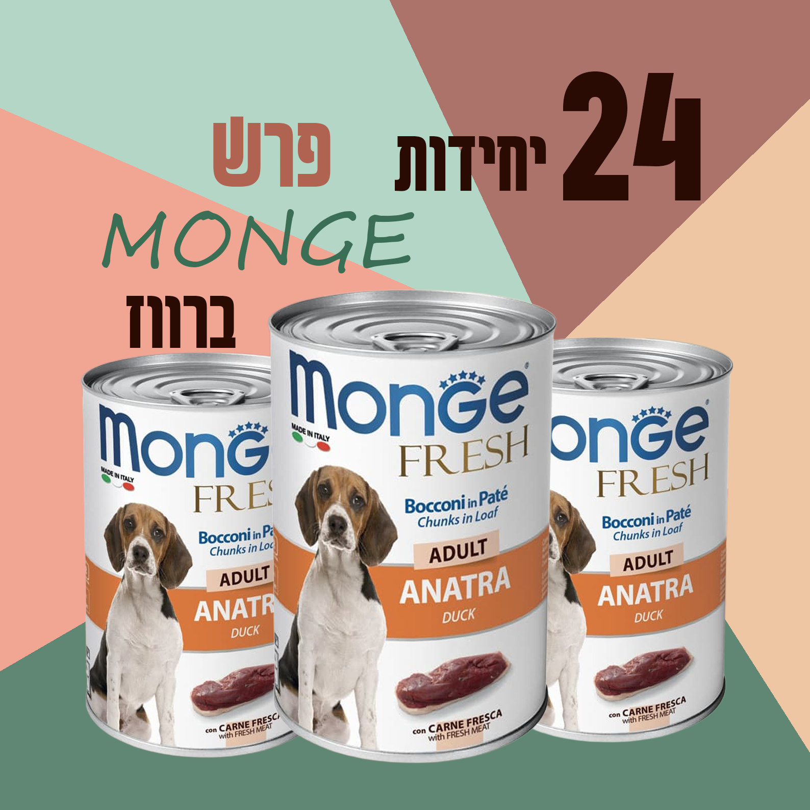 כמות של 24 יח' מונג’ – פרש - ברווז - מזון רטוב מלא לכלב | 400 גר’