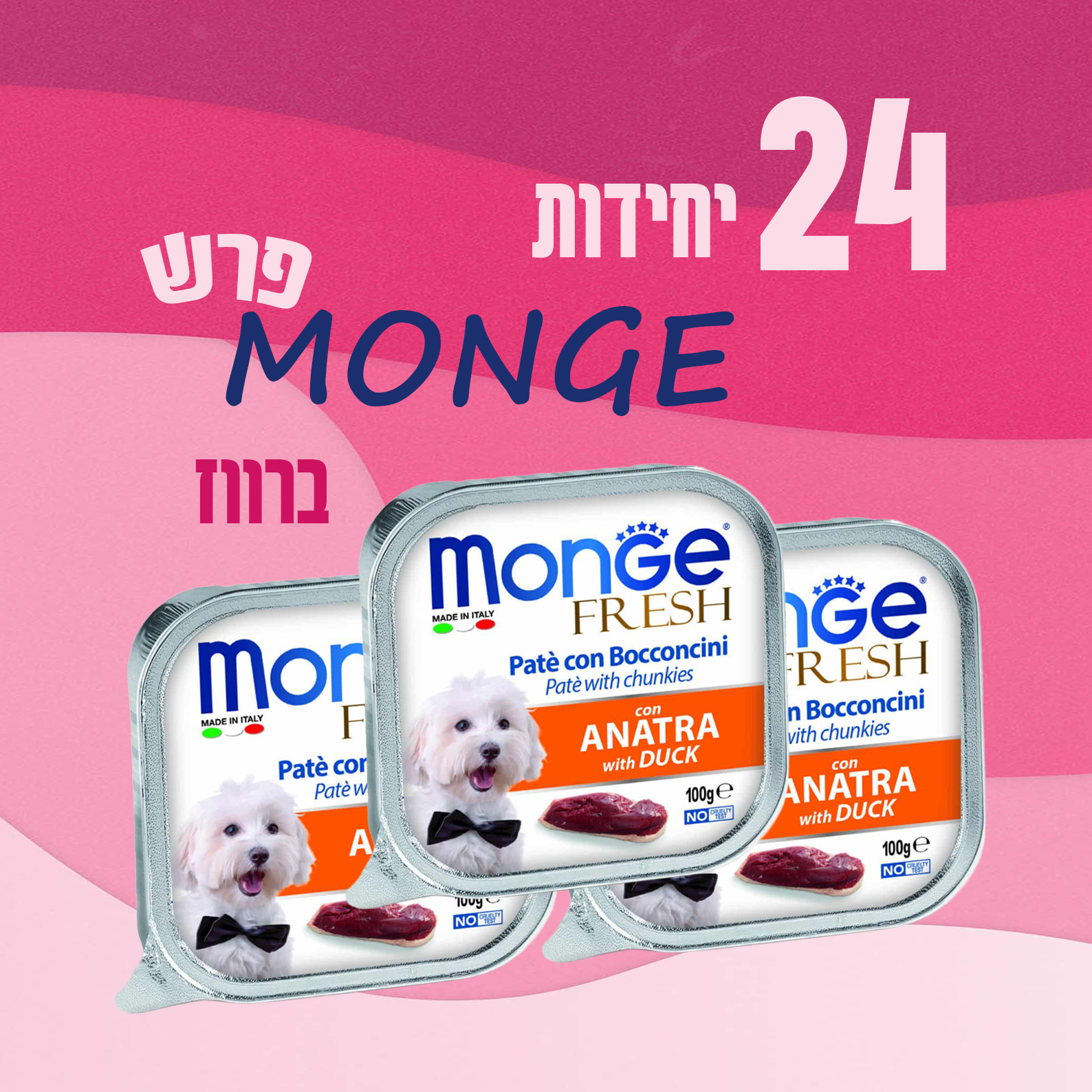 24 יח' מונג’ – פרש | מעדן פטה לכלב – ברווז | 100 גר’