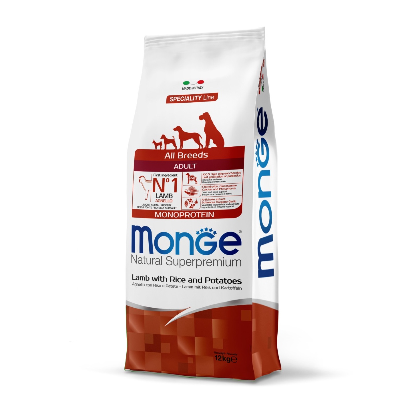 מונג’ | מזון לכלב בוגר – כבש, אורז ותפו”א | 12 ק"ג
