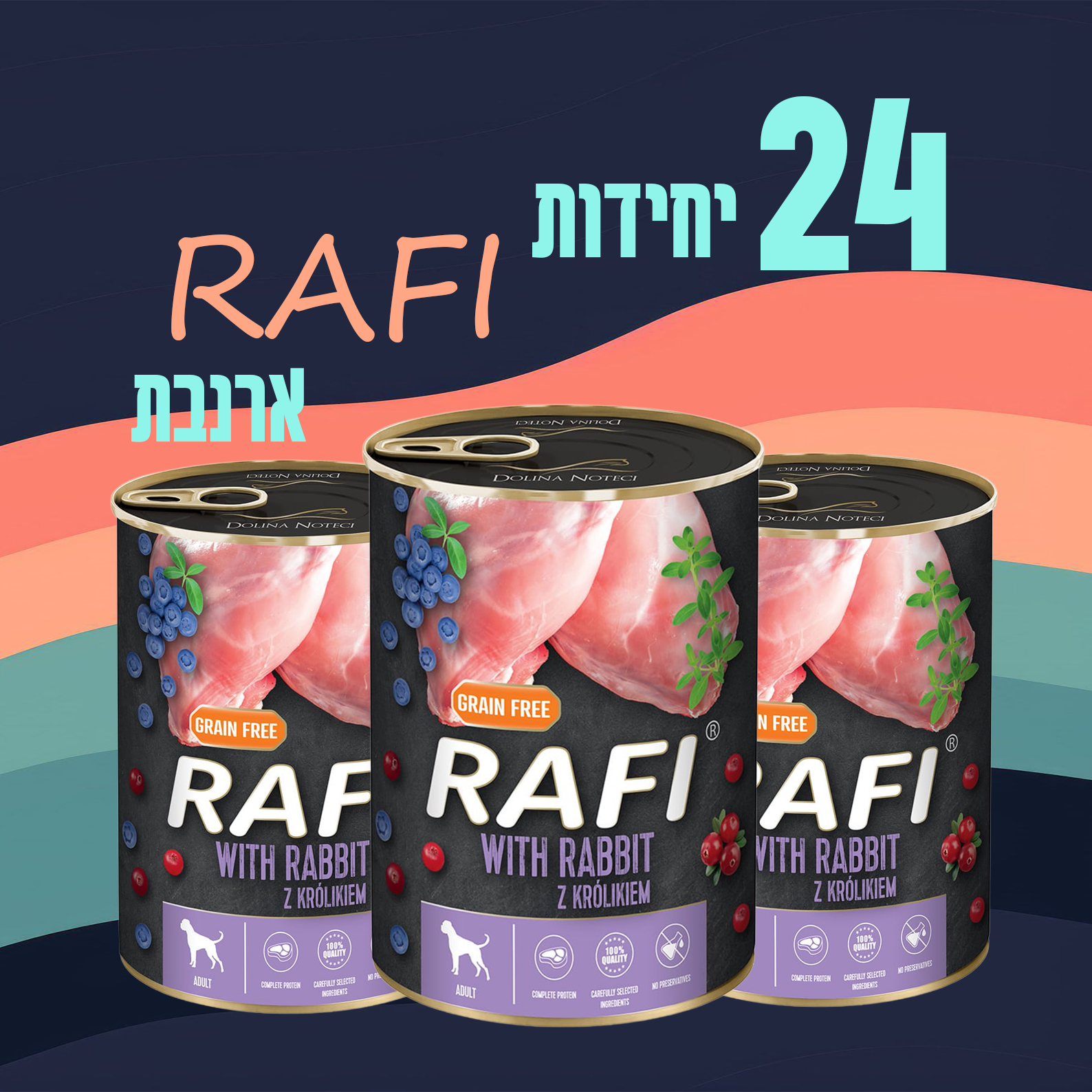 24 יח' ראפי | שימורי פטה לכלב – ארנבת | 400 גר’