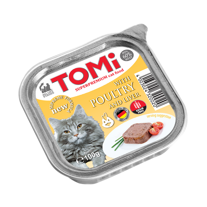 48 יח’ טומי – מעדן עוף וכבד – פטה לחתול | 100 גר’